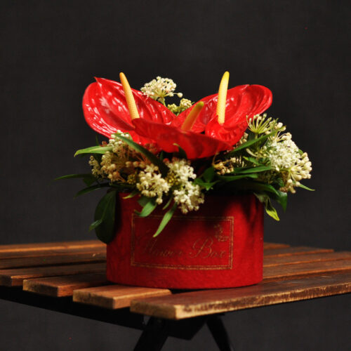 Aranžman sa 11 šarenih ruža sa pratećim zelenilom .
