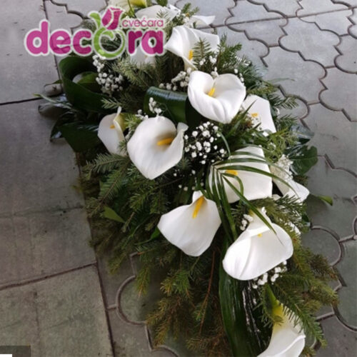 Buket suza sa 4 ljiljana,4 hrizanteme i pratecim zelenilom. Duzina:50cm